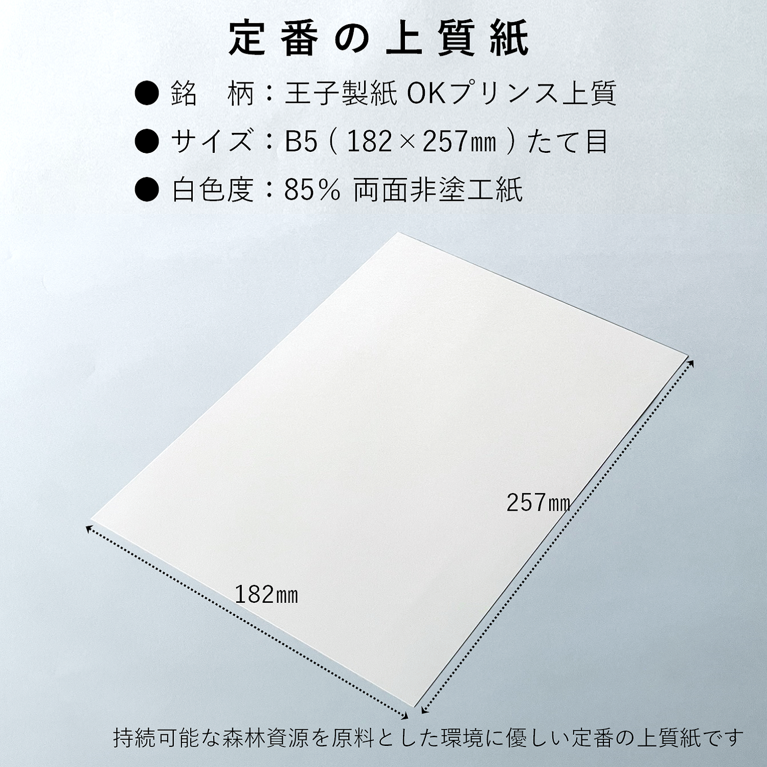 王子製紙製OKプリンス上質使用 / B5上質紙 / インクジェット・レーザープリンタ対応 / 国内加工の定番上質紙
