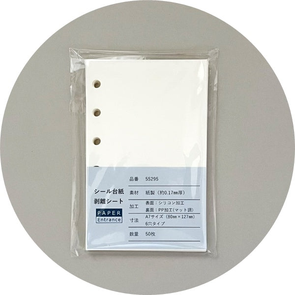 シール帳 シール台紙 A7 50枚 6穴 0.17mm厚 リフィル 貼ってはがせる 剥離紙 55295