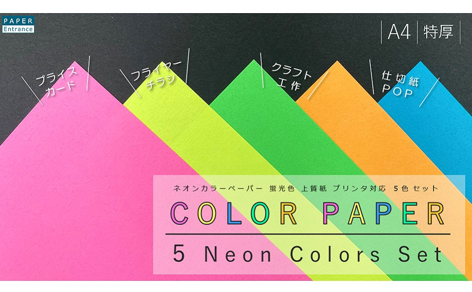 ○紙色 : 日本製 カラー上質紙(蛍光・ネオンカラー5色)