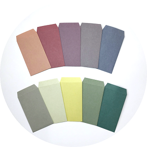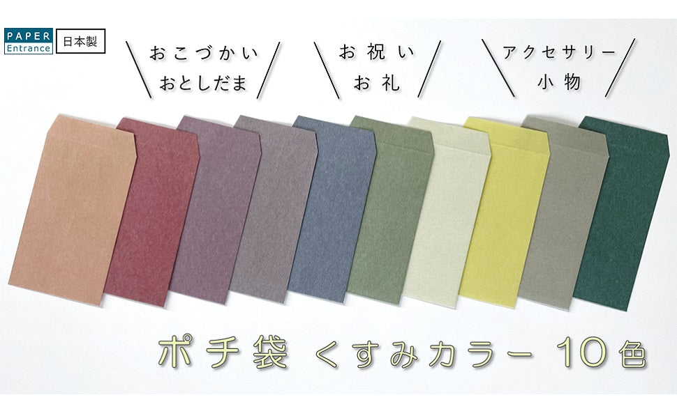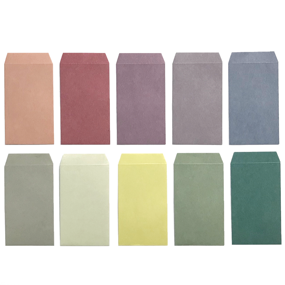 一般的な封筒では見られない、くすみの入った落ち着きと品のあるニュアンスカラーのポチ袋10色セットです。淡みがあるナチュラルなトーンなので、あらゆるシーンになじみます。