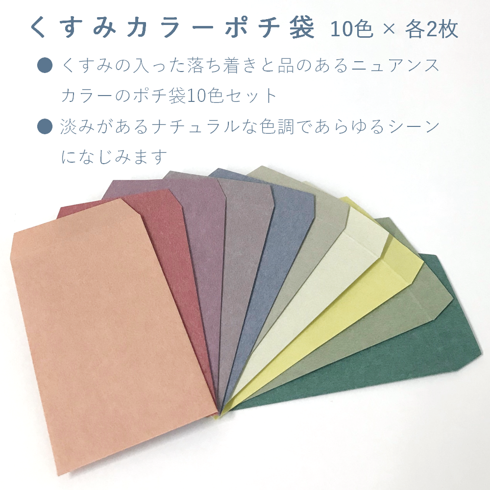 やわらかで美しいトーンのくすみカラーポチ袋・10色セット