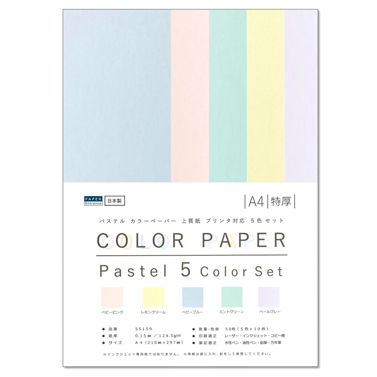 カラー コピー用紙 A4 パステル 5色 特厚口 50枚 色上質紙 工作 撮影用 背景紙 55159