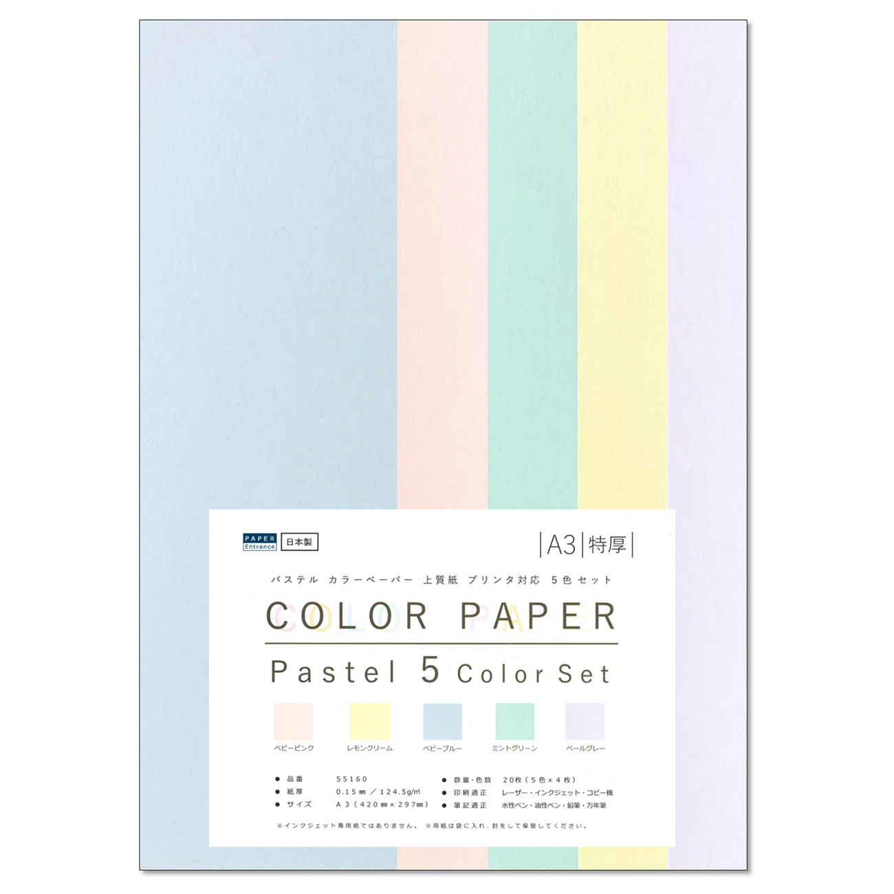 ○紙色 : パステルカラー5色セット/ベビーピンク、レモンクリーム、ベビーブルー、ミントグリーン、ラベンダーグレー