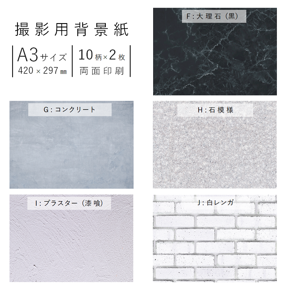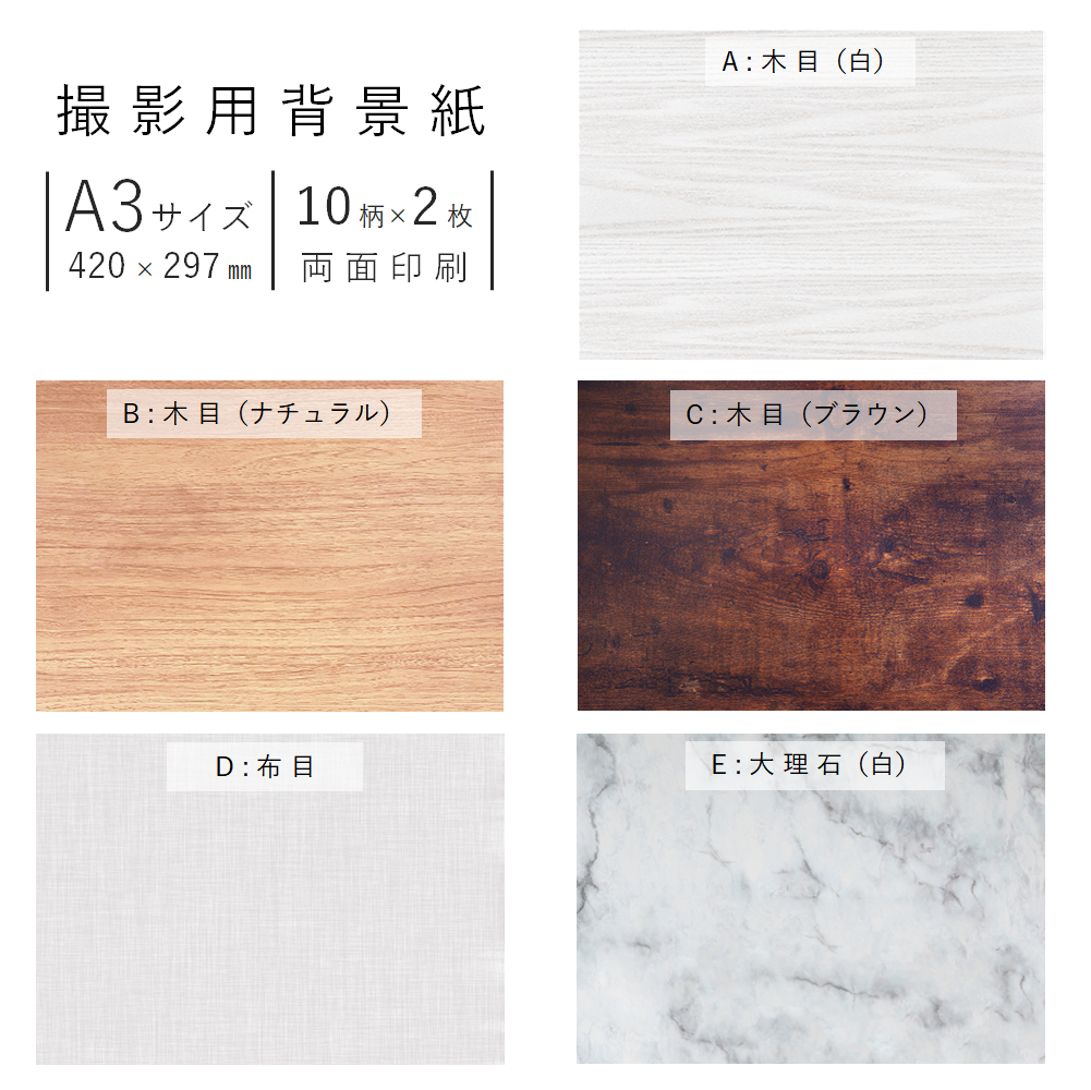 撮影背景シート A3 10柄 各2枚 バックペーパー 両面印刷10枚 商品撮影 55162