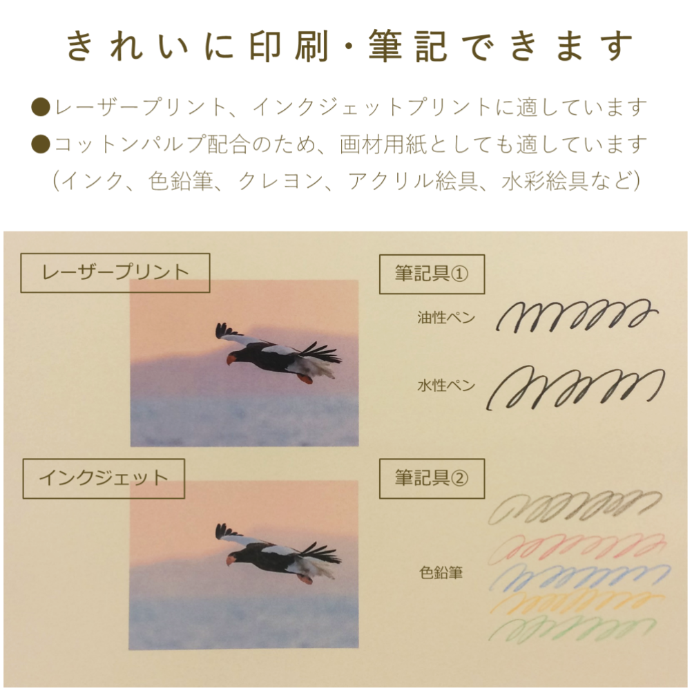 各種プリンタでの印刷適性もありますので、印刷用紙としても幅広い用途でお使いいただけます。 -