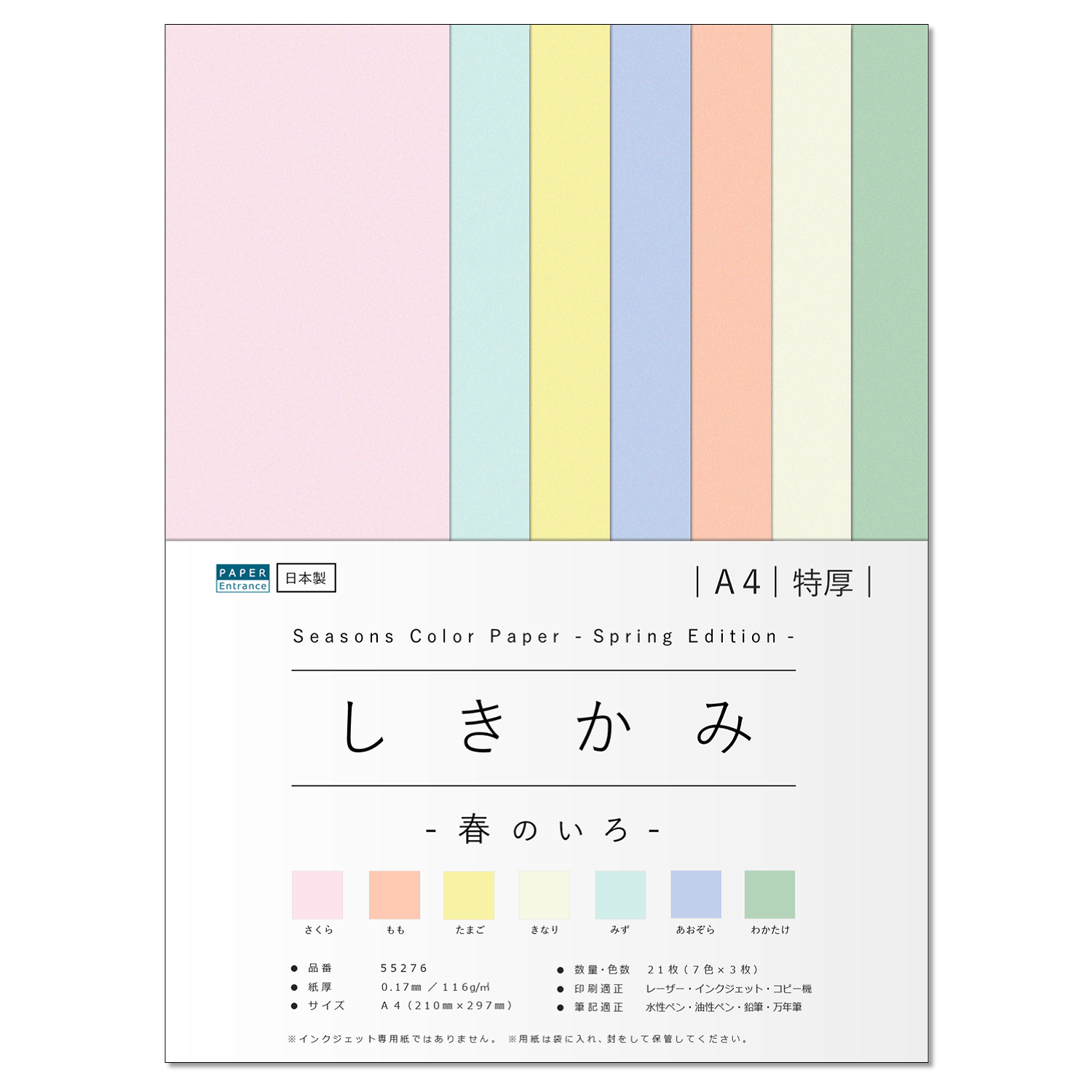 四季を彩る 「しきかみ」シリーズ/春のいろ/印刷・工作・お絵かきに最適なカラー上質紙 A4 特厚